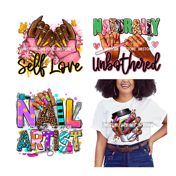 תקופה חדשה אפרו אישה אמן ציפורניים מדבקות הדפסת טק מלכה שחורה אהבה עצמית ידיים ברזל על DTF העברת מדבקות לקפוצ'ונים