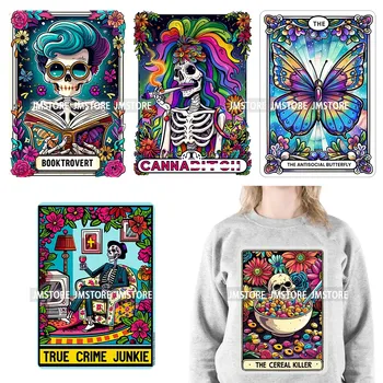 מצחיק אמיתי נרקומן קורא מורה שיכור עקרת בית המלכה tarot כרטיס dtf ברזל על העברה מדבקות מוכן ללחוץ עבור בגדים