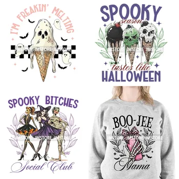 מכירה חמה ליל כל הקדושים הדפסת עונה מפחידה מפחידה אמא חמודות ברגים ברזל על DTF מדבקות העברת פלסטיק לשקיות בגדים