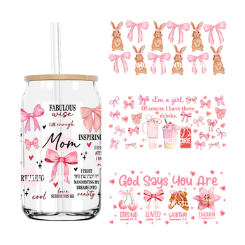 ארנב פסחא חמוד עם פרח 16OZ UV DTF מדבקת העברת גלישת כוס תווית מותאמת אישית לוגו עמיד למים עשה זאת בעצמך עבור ליבי פחית זכוכית