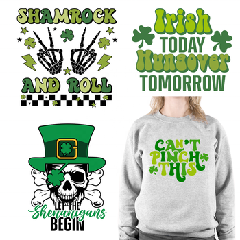 יום אירי שמח סנט פטריק מזל ויברציות שמירון ורול משאלות DTF מדבקות העברת חום הדפסה מוכנה ללחיצה על בגדים