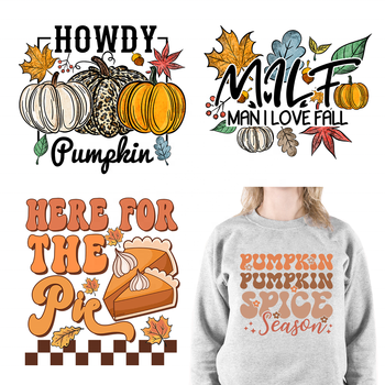 Ferro na queda do outono Cozy Season Logo Adesivos Thankful Pumpkin Spice Pie DTF Heat Transfer Print Ready To Press For Clothing